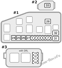 Fuse Box Layout Toyota Corolla Right-hand Drive and Left-hand Drive (E110; 1995, 1996, 1997, 1998, 1999, 2000, 2001, 2002) Body Types: Saloon, Hatchback, Wagon, Liftback