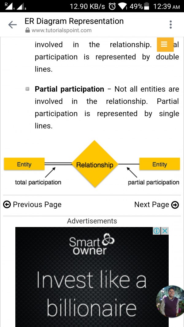 Total participation in er diagram. Q.l Answer the follewing questions . Explain total participation and partial participution in ER diagram. 2. Explain cardinality constraints in ER diagram 3. Map the following conceptual schema in ER to logical database schema. Total And Partial Participation In Er Diagram Examples – Entity Relationship Diagrams are the most useful instruments to talk inside the entire system. These diagrams are the graphical reflection of the stream of web data and knowledge. These diagrams are most commonly employed in enterprise agencies to make details journey effortless. IQ.3] Answer the following questions (a) Explain total participation and partial participation in ER diagram. (b) Derive logical bank database schema from the bank conceptual specified in ER diagram as shown below using mapping rules explained in the chapter 9. (c) Show and explain all the referential integrity constraints in the bank logical ... 1. Total Participation- · It specifies that each entity in the entity set must compulsorily participate in at least one relationship instance in that ...