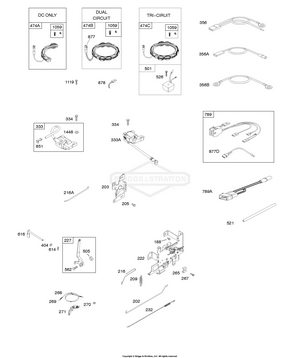 Ignition_wiring Basic Wiring Diagram BRIGGS Check air vane governor blade, linkage and spring for damage or wear. The governor is set at the factory, and should never need adjusting again unless it gets replaced. When Briggs & Stratton governors are adjusted properly, they keep your speed steady regardless of engine load (the amount of work the ... The governor system is like a cruise control system in an automobile. It maintains the speed of your lawn mower or outdoor power products. When Briggs & Stratton governors are adjusted properly, they keep your speed steady regardless of engine load (the amount of work the engine must perform). Find the operator's manual or illustrated parts list for your Briggs & Stratton engine or product by following the instructions below. Looking for a part number? Use the Parts Lookup tool to find your part number, availability & pricing, and order online. 1. Locate your model number. Briggs and Stratton 331877-2371-G5 ALTERNATOR, CONTROLS, ELECTRIC STARTER, GOVERNOR SPRING, IGNITION Exploded View parts lookup by model. Complete exploded views of all the major manufacturers. It is EASY and FREE