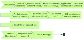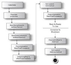 Spring bean life cycle diagram. In the spring bean lifecycle, initialization and destruction callbacks are involved. You can manage it and there are three possible ways to manage the lifecycle of beans. Every bean has life cycle i.e. bean started, bean running and finally bean destroyed. Three ways to manage the lifecycle of beans in Spring framework. Programmatic approach Post-initialization Spring provides Aware interfaces to access application bean meta-data details and callback methods to hook into the bean life cycle to execute custom application-specific logic. 5. Spring Bean Life Cycle. Creation of bean instance by a factory method. Set the values and bean references to the bean properties. Call the initialization call back method. Bean is ready for use. Call the destruction call back method. Spring can recognize the initialization and destruction callback methods in the below three ways. This video explains the Spring Bean Life Cycle. There are 3 stages of the bean life cycle:i. Bean initializationii. Bean Activationiii. Bean DestructionThe f...