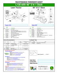 Service Schedule Parts for a John Deere L130 Lawn Tractor & Parts List. While your John Deere machine is certainly built with quality parts, they have a limited life. Good news is you can easily service your machine yourself using a John Deere maintenance kit or service kits or by getting the specific John Deere part needed to keep your John Deere mower or tractor running for a long time.