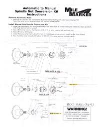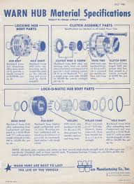 Automatic Hubs. Some factory hubs are installed with locking cones, whichcan be difficult to remove. Two methods to dislodge the locking cones are: 1) Place a socket slightly larger than the cone againstthe hub flange and rap sharply with a hammer. 2) Place a brass punch on the end of the stud and rap sharplywith a hammer. II. Prepare Wheel End. WARN 4WD HUBS Installation Instructions for Standard and Premium Internal Mount Hublocks Premium Hublock P/N 20990 Standard Hublock P/N 9790 WARN PRODUCTS LIMITED LIFETIME WARRANTY STATEMENT Warn Industries, Inc. (Warn) warrants Parts and labor, excepting electrical components, directly to the first purchaser of each Warn products ... Wheel Hub Bearing Seal, 60-76 Jeep CJ Models (Dana 27 & 30) This is the front hub seal that is used on Model 27 axles. The seal has an outside diameter of 3". T... Product Code: 938151. $2.45. + Free Shipping. $2.45. 12 May 2008 — 1987 - 1996 F150 & Larger F-Series Trucks - 4WD Manual Locking Hub Assembly Diagram - I ahve a 92 F350 4X4 and one of the front 4WD hub ...