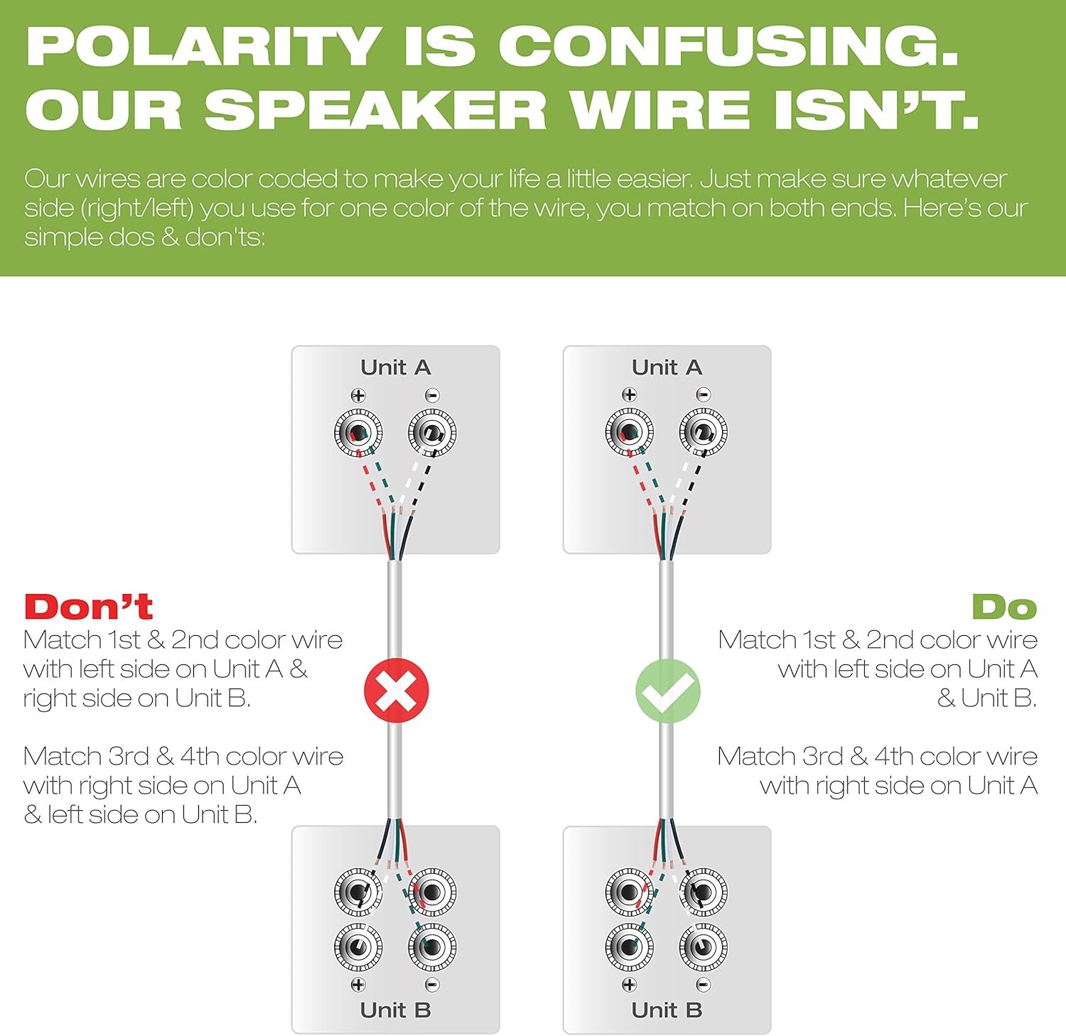 Crutchfield Speaker Wire Guide Four-conductor wire is also good for connecting stereo-input speakers. Ask a Crutchfield A/V designer to recommend the right kind wire for your installation. Pull 4-conductor wire to an in-wall volume control (left) or a stereo-input speaker (right).