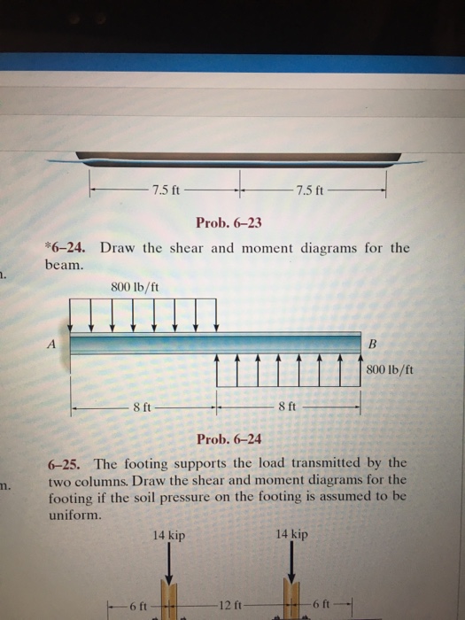 Draw the shear and moment diagrams for the simply supported beam. ... = 12 kN.mor MIX 4m 12kN .m . 4m 0 (b) M . 7—46. Draw the shear and moment diagrams for the ... If L = 18 ft, the beam will fail when the maximum shear force is V 800 1b, or the maximum moment is max 1200 1b .ft. Determine the largest intensity w of