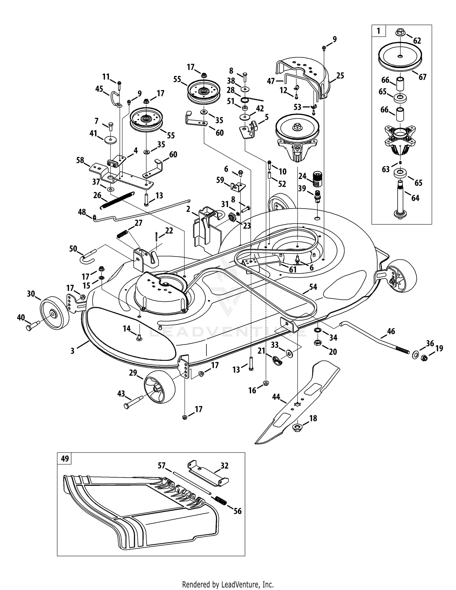 MTD 13AL78ST099 (247.288852) (2012) Mower Deck 46-Inch Exploded View parts lookup by model. Complete exploded views of all the major manufacturers. It is EASY and FREE