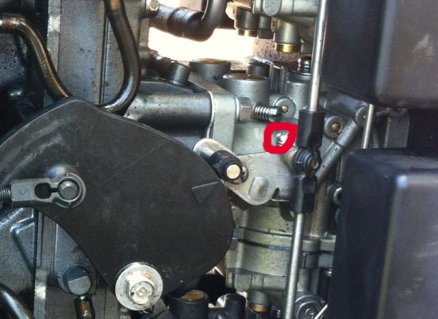 1985 F9.9SK Yamaha Outboard CARBURETOR Diagram and Parts. The jets are tightened down fully, there is no adjustment (inside the float bowl) (short of swapping jets). If you can post, from the link above EXACTLY what part your referring to would help.. If its part #9, it appears the "taller part" faces the engine (per the pic).