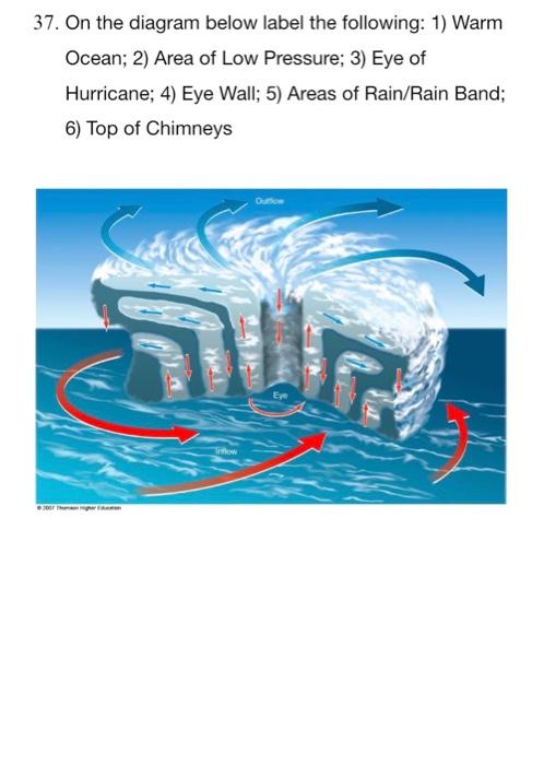 Label the Cyclone Diagram. 1. Ocean surface. 2. Warm moist air rises. 3. Clouds and thunderstorms form. 4. Winds spiral clockwise.1 page