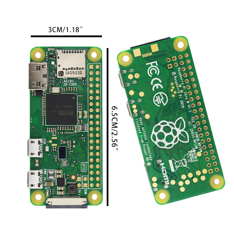 Raspberry Pi Zero v1.3. Raspberry Pi Zero W v1.1 ... Camera Connector (not on Zero 1.1 or 1.2) - 22pin, 0.5mm. Board Dimensions - 65mm x 30mm x 0.2mm.