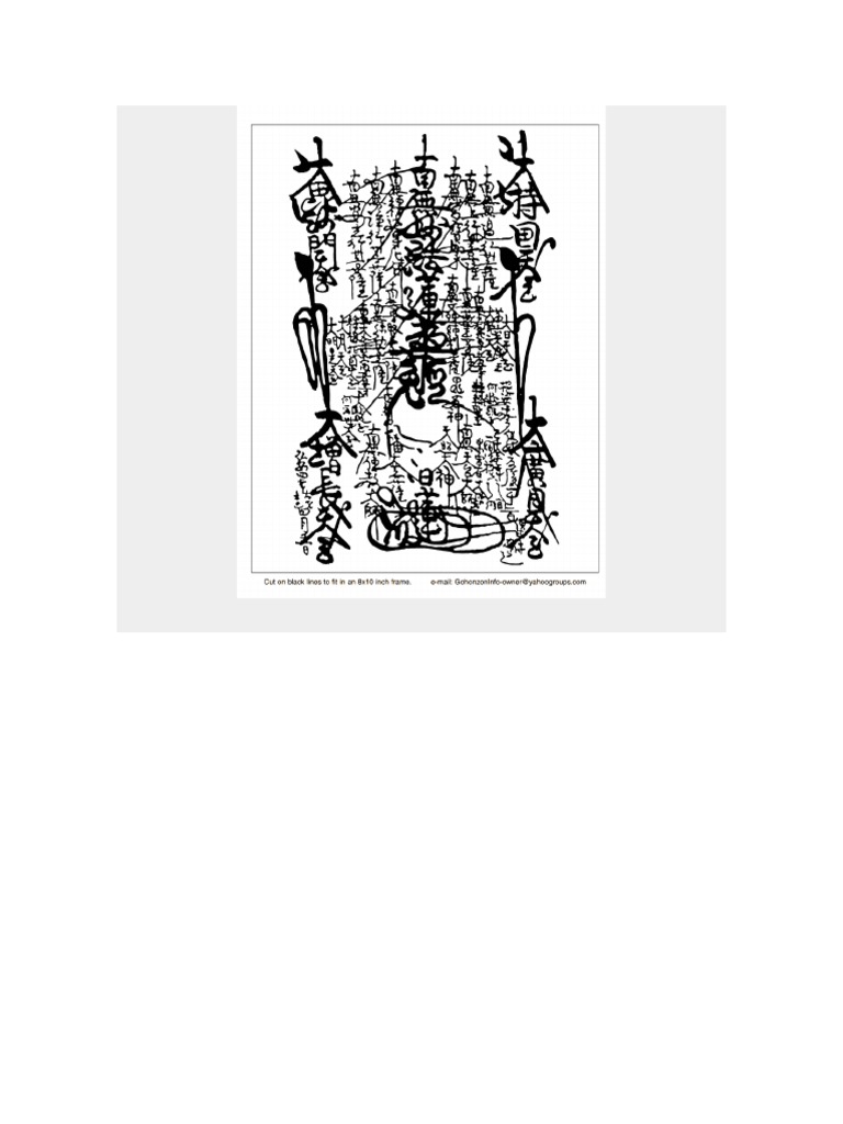 SGI Gohonzon Map Download PDF. It took me twenty years for reasons too long to go into here, suffice to say it was a great day. As a little aid to memory, and to help in my study, I have created a printable Gohonzon Diagram of the Nichikan Gohonzon the SGI confers upon members -This Gohonzon was originally inscribed by high priest Nichikan in 1720. The Gohonzon diagram published along with this article will help you see the position and meaning of each inscription on the Nichikan-transcribed Gohonzon. It is hoped that explaining the graphic components of the Gohonzon will make it easier for you to sense the meaning of Nichiren Daishonin’s message to all humanity-that every individual is ... The following diagrams compare the inscriptions of the Dai-Gohonzon (left) and the Nichizen mandala (right). These are exactly the same, with the exception of the date and conferral. A. Namu Myōhō Renge Kyō 1. Dai Jikoku Ten'ō 2. Namu Muhengyo Bosatsu 3. Namu Jōgyō Bosatsu 4. Namu Tahō Nyora 5. Namu Śākyamuni Butsu 6. Namu Jōgyō ... If your Gohonzon is rolled up for an extended period (for example, because you generally chant to your partner's Gohonzon), be sure to protect it from damp air. If it gets damp while rolled up, mildew spots can appear. The Gohonzon is the clearest of all mirrors, which reflects the entire universe exactly as it is.