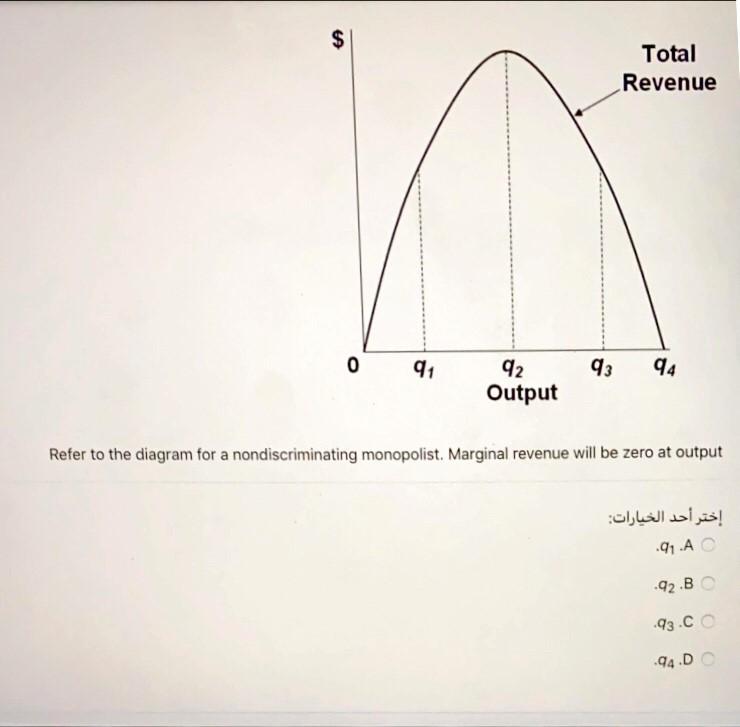 ECON CH 12 Flashcards | Quizlet Refer to the diagram for a nondiscriminating monopolist. Marginal revenue will be zero at output: Q2. Refer to the diagram for a nondiscriminating monopolist. The profit-seeking monopolist will: never produce an output larger than q2.