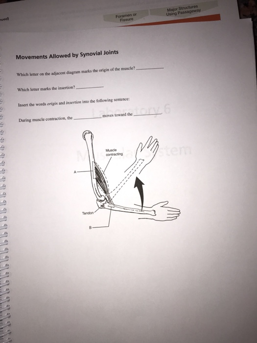 2. 3, 9. In which direction does the shoulder usually dislocate? Movements Allowed by Synovial Joints 10. Which letter on the adjacent diagram marks the origin of the musele? Which letter marks the insertion? Insert the words origin and insertion into the following Muscle contracting sentence During musle contraction, the toward the Tendon Editor’s note: Replace figure with one that includes all muscles from table for example figure 10.7 from Marieb or 9.8 from Amerman. The orbicularis oris is a circular muscle that moves the lips, and the orbicularis oculi is a circular muscle that closes the eye. The occipitofrontalis muscle elevates the scalp and eyebrows. The muscle has a frontal belly and an occipital belly (near the ... Which Letter Of The Adjacent Diagram Marks The Origin Of The Muscle. (Correct Answer Below). Reveal the answer to this question whenever you are ready. Which letter of the adjacent diagram marks the origin of the muscle? Which letter marks the insertion? Insert the words origin and insertion into the following sentence: During muscle contraction, the moves toward the. 11. Complete the descriptions below the diagrams by inserting the type of movement in each answer blank. Origin Insertion ...