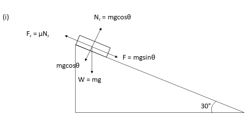 A free body diagram shown above is for a 5kg box on a ... A free body diagram shown above is for a 5kg box on a rough surface being pulled to the right at a constant speed by a string that is at an angle of 30 degrees above the horizontal. The coefficient of kinetic frictopn between the box surface id .30 the tendion on the string is most nearly. Categories Others.