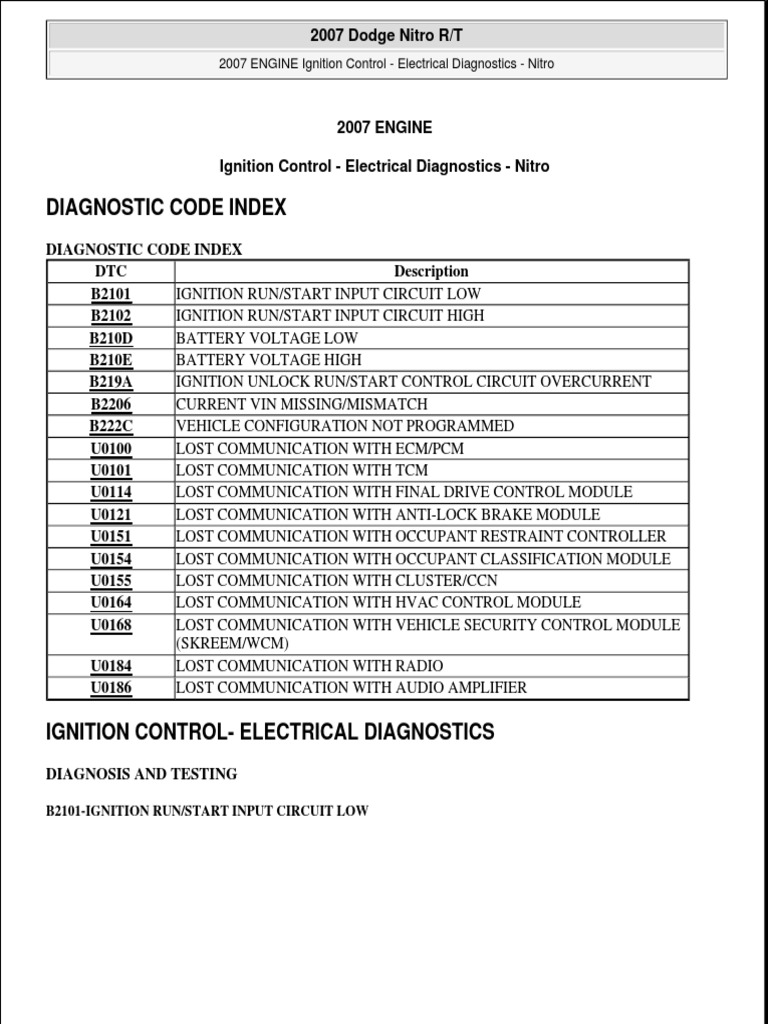 Dodge nitro wiring diagram - MHH AUTO - Page 1 Dodge nitro wiring diagram. jaysecu Location Offline Junior Member. Reputation: 0. (12-03-2018, 11:07 PM)jaysecu Wrote: HI, i'm looking for a wiring diagram for the engine of a 2007 dodge nitro. I have a start but no run engine and no fuel pressure at the rail.