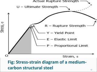 en.wikipedia.org › wiki › Stress–strain_curveStress–strain curve - Wikipedia A schematic diagram for the stress-strain curve of low carbon steel at room temperature is shown in figure 1. There are several stages showing different behaviors, which suggests different mechanical properties. To clarify, materials can miss one or more stages shown in figure 1, or have totally different stages.